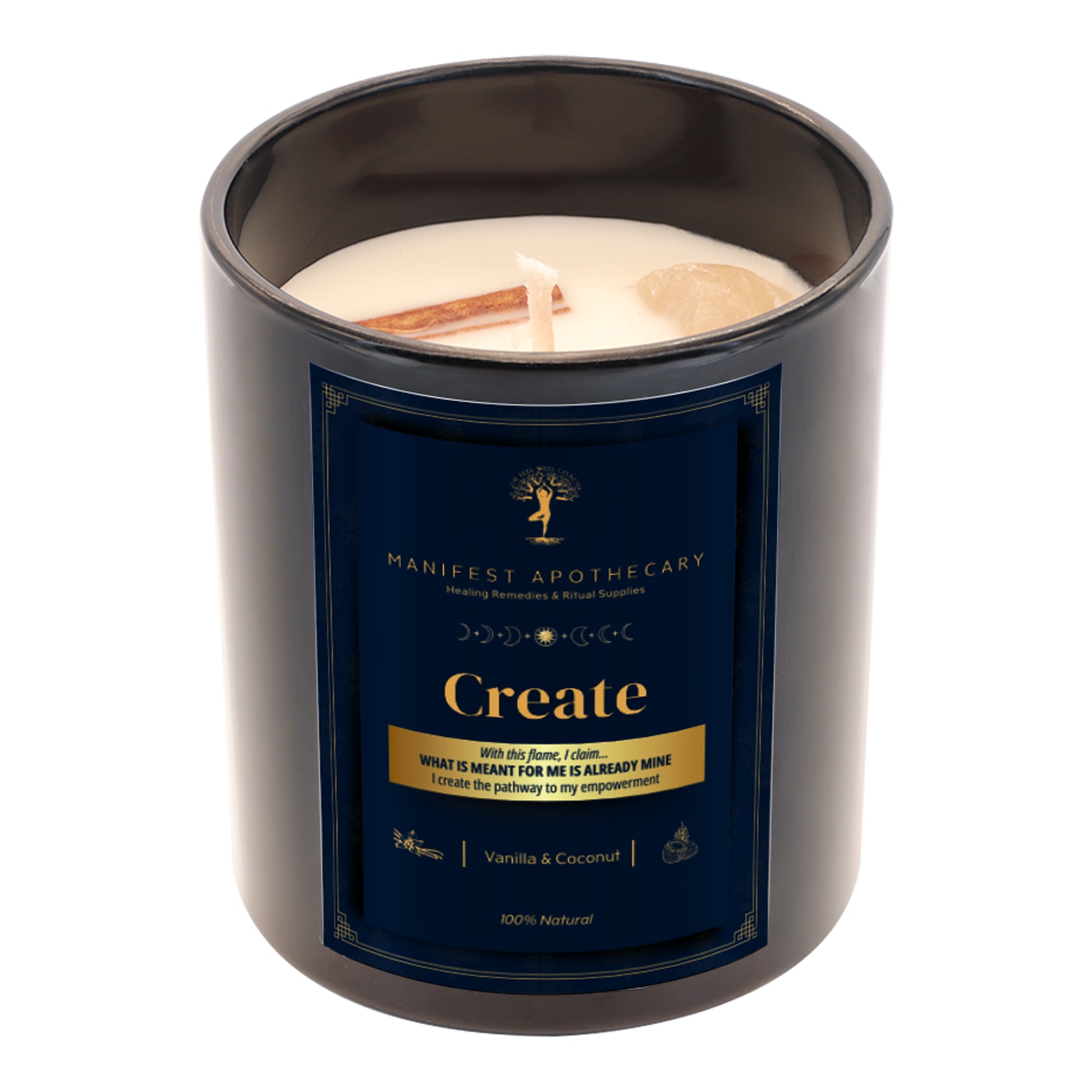 🕯️ Create Candle – Vanilla & Coconut with Cinnamon and Rose Quartz Crystals | Manifest Apothecary® | Inspiration, Creativity & Manifestation | Hand-Poured Intention Candle for Artists & Dreamers